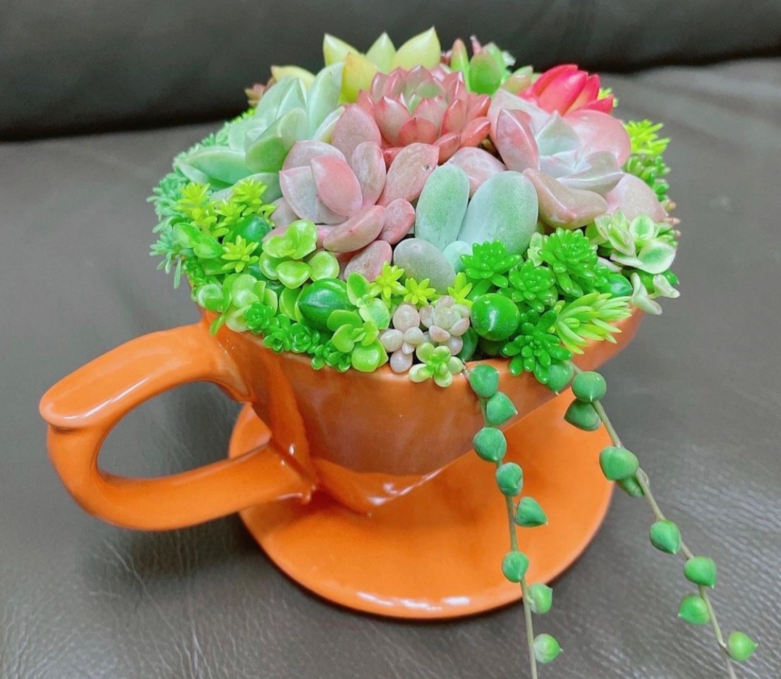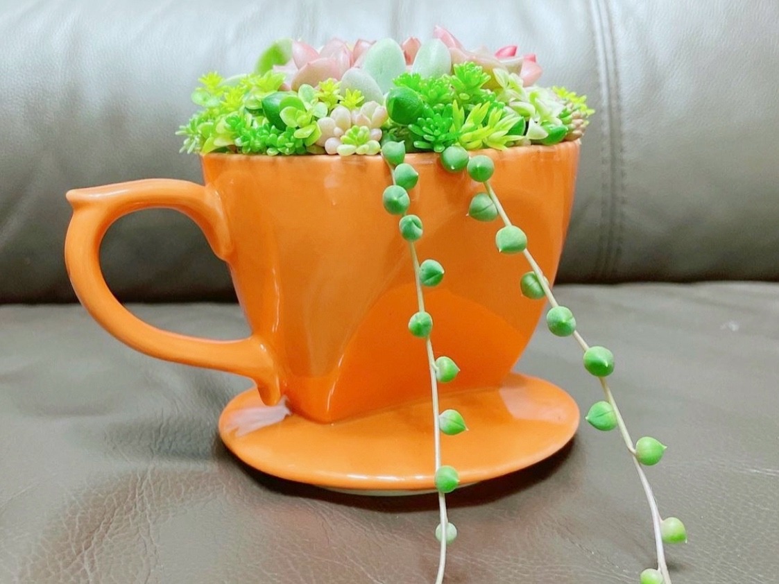 ドリッパーに多肉植物を寄植えしてる